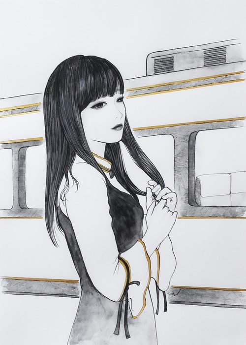 ●技法(technique):墨・顔彩・ペン・金墨汁(japanese ink+watercolor+pen)