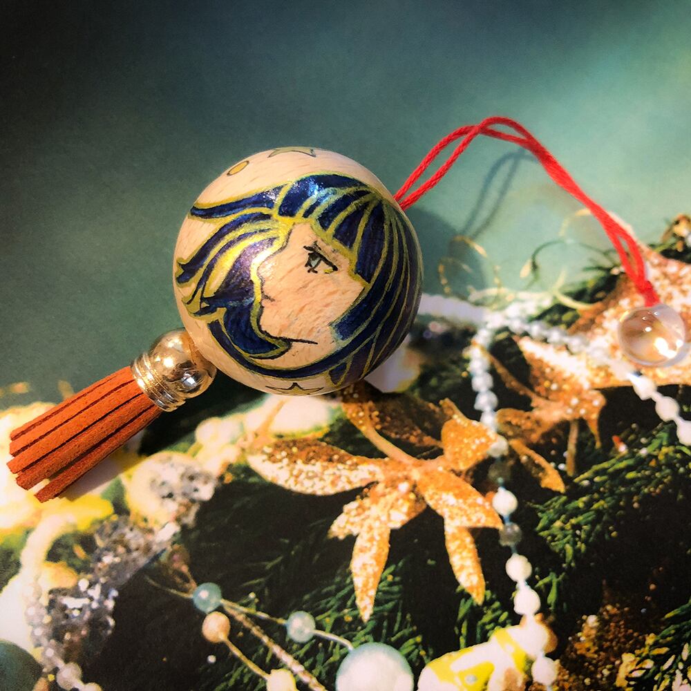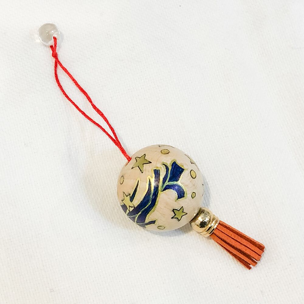 ●備考(note):木製の球にアクリルで描いたのちに、ニスを塗っています。