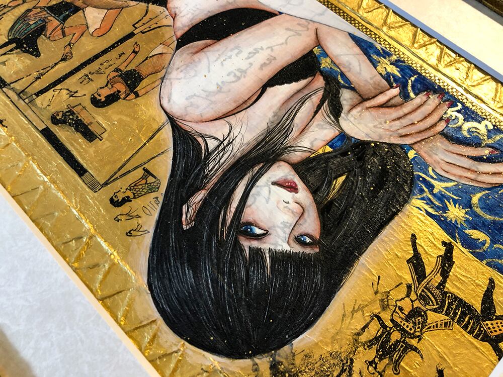 ●技法(technique):古紙・岩絵具・水干絵具・金墨汁・洋箔(old paper・watercolor・gold ink)