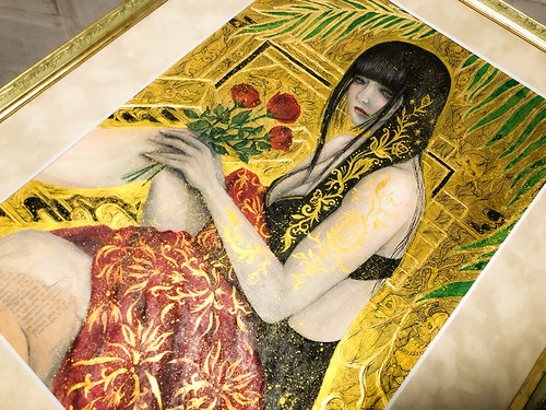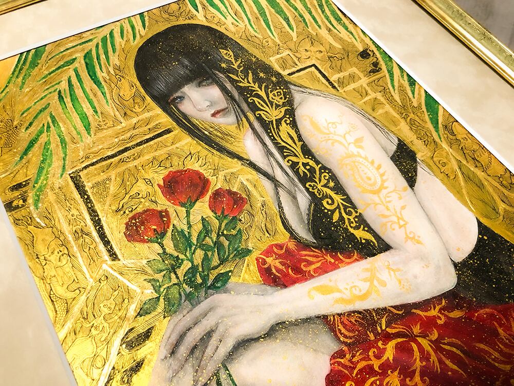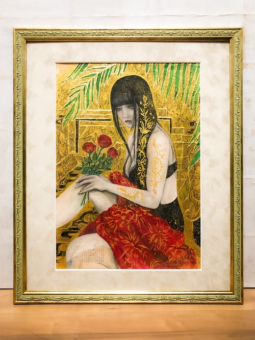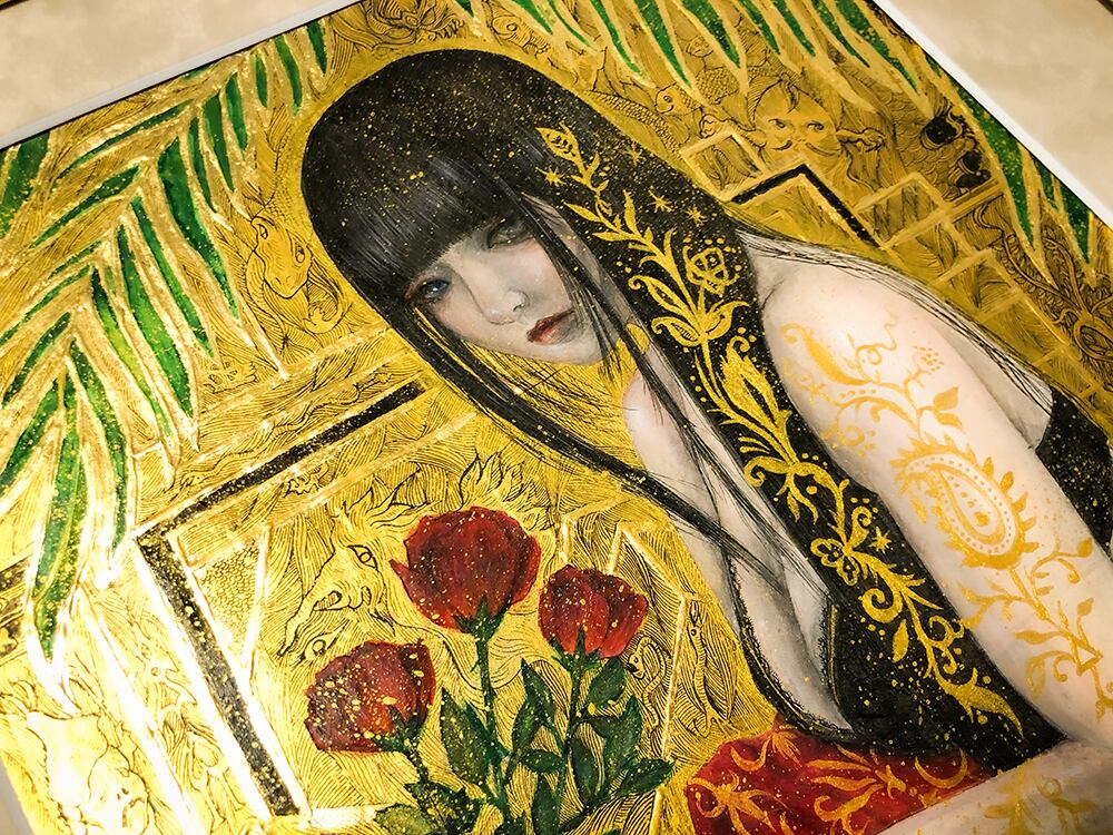 ●技法(technique):古紙・岩絵具・顔彩・金墨汁・金箔(old paper・watercolor・gold ink)