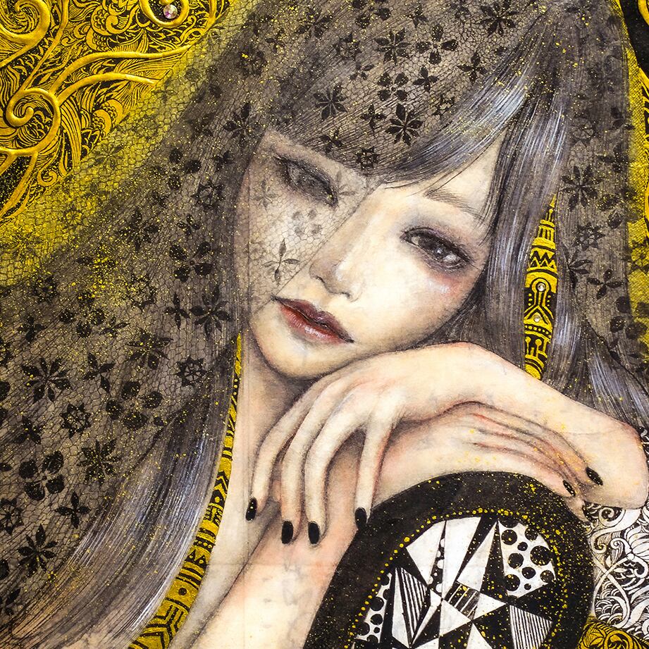 ●技法(technique):古紙・岩絵具・顔彩・金墨汁・墨(old paper・watercolor・mineral pigment・Sumi)
