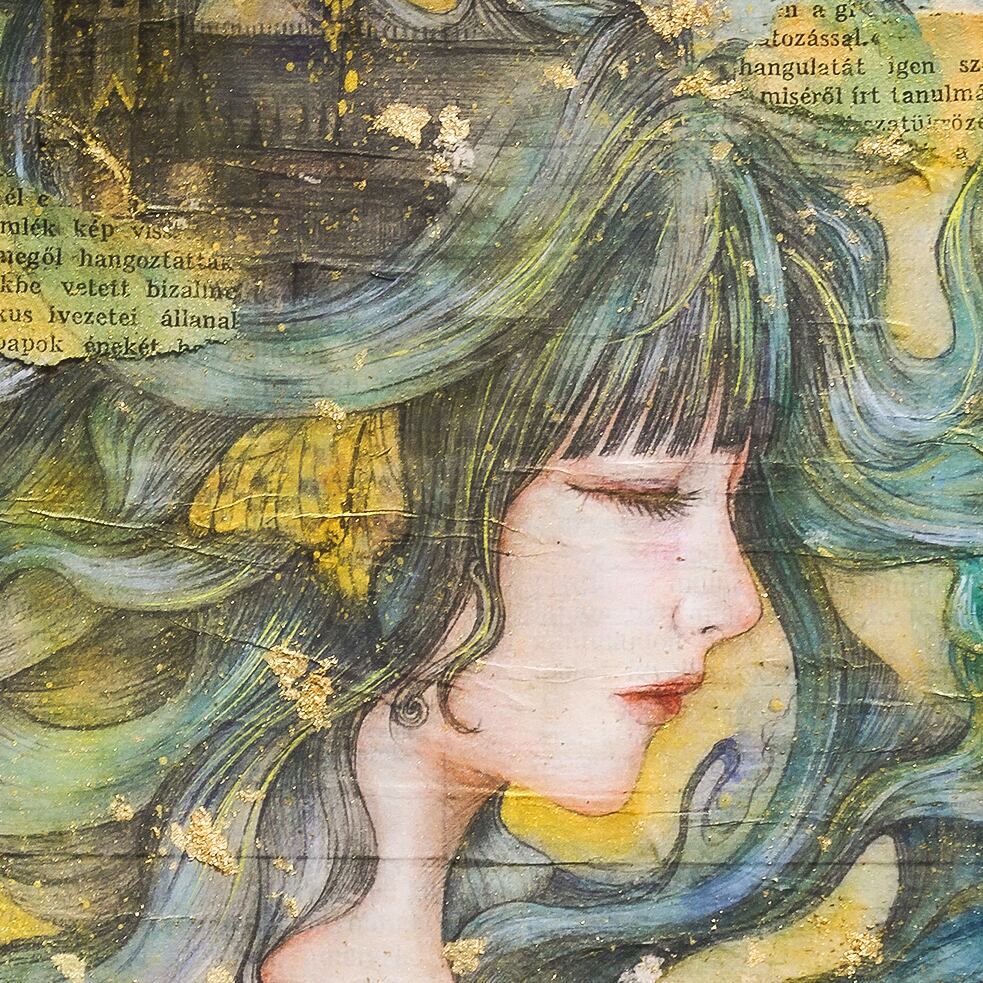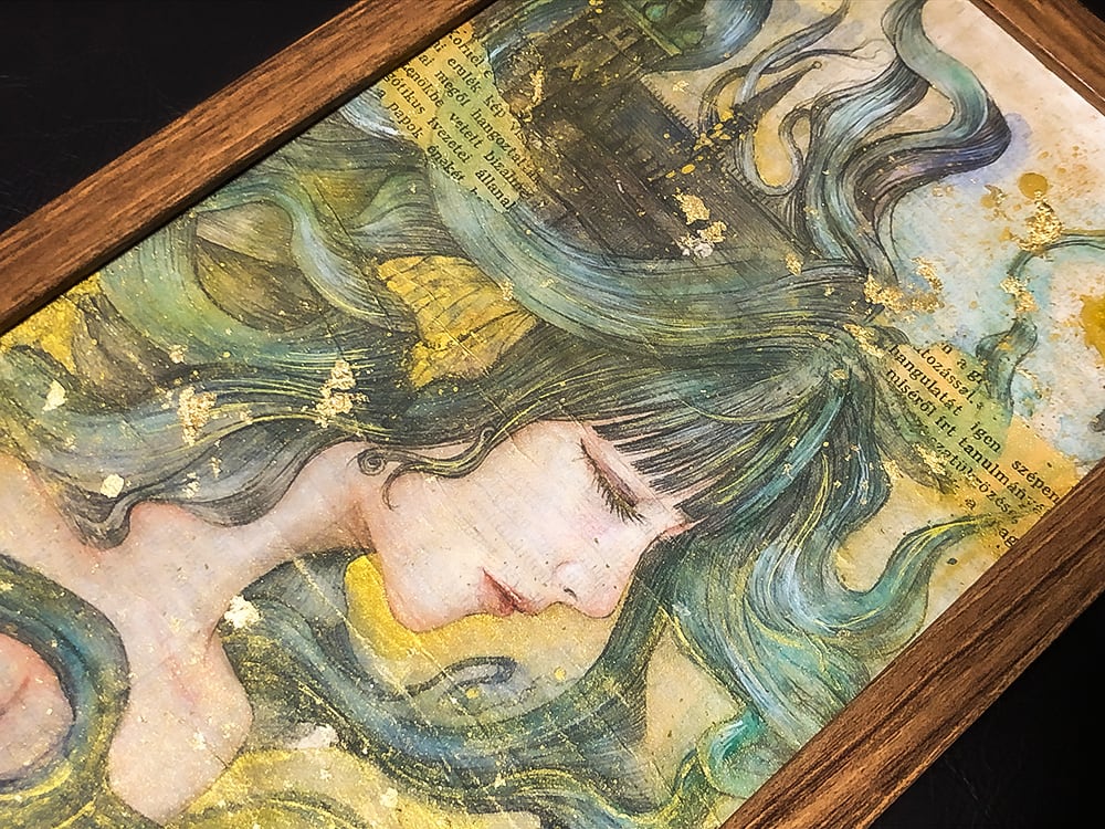 ●技法(technique):古紙・岩絵具、顔彩、金墨汁、墨、洋箔(old paper・watercolor・mineral pigment・Sumi)
