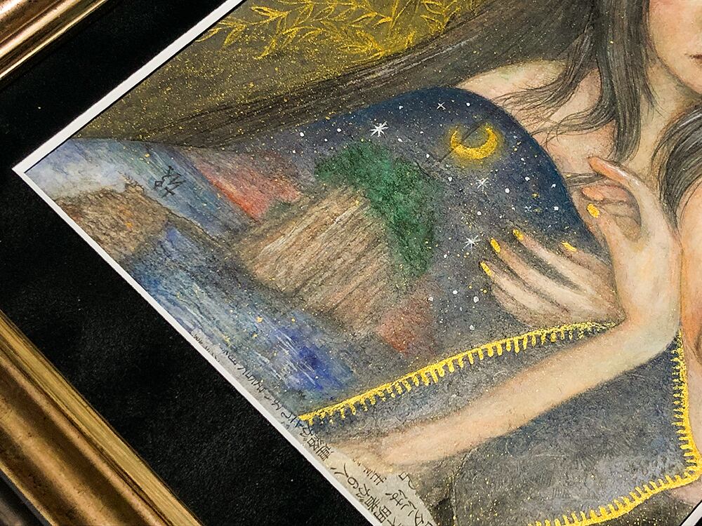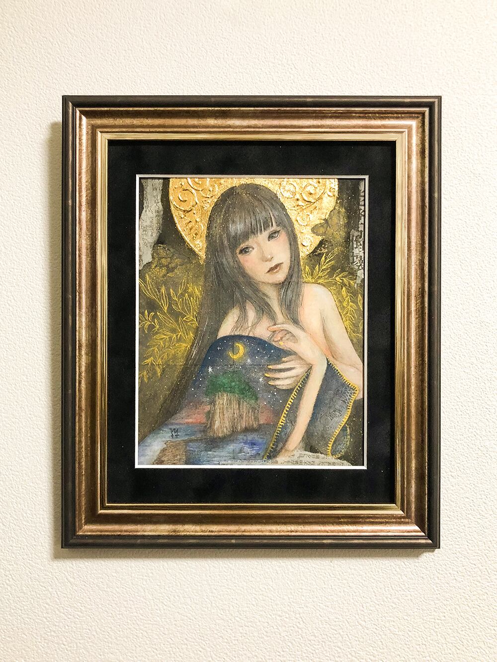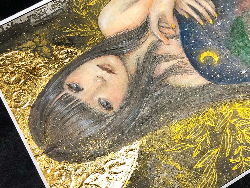 ●技法(technique):古紙・岩絵具・顔彩・金墨汁(old paper・watercolor・mineral pigment・Sumi・gold leaf)