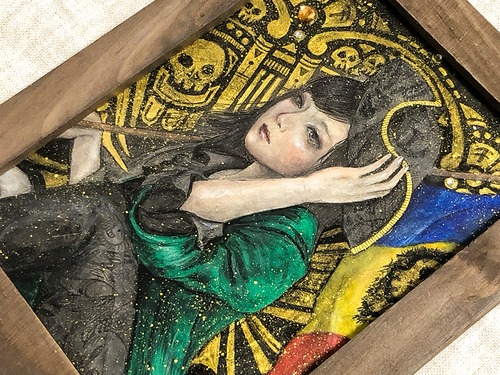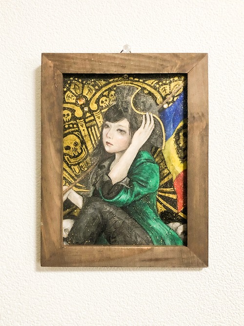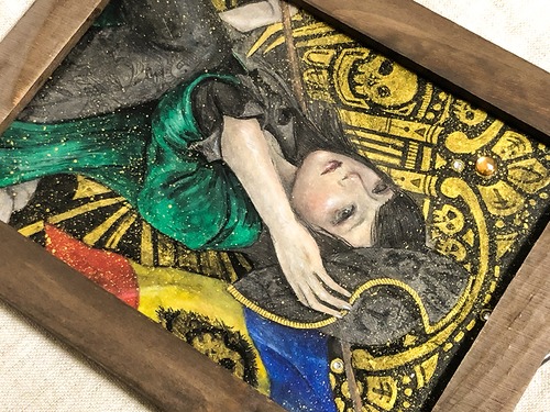 ●技法(technique):古紙・岩絵具・顔彩・アイシャドウ・金墨汁・洋箔・ラインストーン(oid paper・mineral pigments・watercolor・goldink・eyeshadow・LineStone)