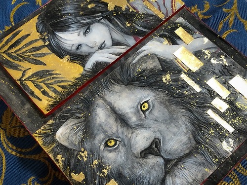 ●技法(technique):古紙・岩絵具・顔彩・洋箔・金墨汁(old paper・watercolor・mineral pigment・Sumi・gold leaf)